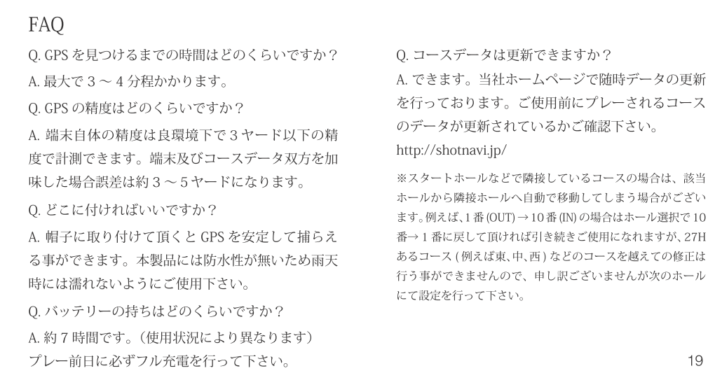 音声タイプ 製品概要 取扱説明書取説 よくあるご質問FAQ Shot Navi Voice Caddie マニュアル Shot Navi Voice Caddie の取扱説明書(PDFファイル)はこちら 更新方法はこちらをご覧ください ShotNaviファミリー現行機種 AIR EX 驚愕の軽さ&タッチパネル Evolve PRO Touch 最大級画面&タッチパネル搭載! Infinity グリーンを攻めろ! Evolve PRO 業界最大サイズディスプレイ! Granz 最小・最軽量カラーハンディ AIR 驚愕の軽さ&タッチパネル超コンパクト Crest フラグシップモデル新色登場 Evolve 屋外での視認性抜群!大人気ベストセラー BeyondLite カラー液晶&リーズナブル大好評販売中 HuG Beyond 屋外での視認性抜群!ベストセラー Neo2hp コンパクトな手持ち型音声案内やデカ文字機能も V2 ワンプッシュで音声案内!簡単・ラクラク操作 Laser Sniper ELUA サブLCD搭載高速計測、広視野ファインダー Voice Laser Red Leo 赤色OLEDで視認性抜群多数のプロが使用中 Laser Sniper nano 世界最小・最軽量級大好評販売中! Voice Laser Leo 音声操作で手ブレを軽減1000Y計測、高速測量 X1 Fit2 1000 手のひらにフィット!コンパクトながら1000Y計測